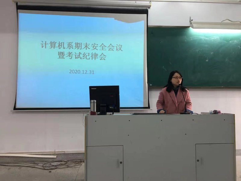 计算机系于12月31日中午在教学三区210教室召开期末安全会议暨考试纪律会,系党总支专职副书记陈国辉、学生科科长陈子艺、辅导员老师和各班班长、团支书、宿舍长参加了会议,会议由陈子艺科长主持。