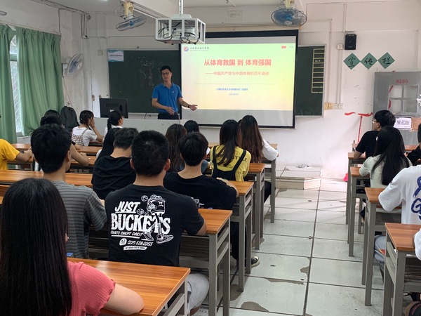 陈国辉老师的授课分为三个部分,一、体育救国:早期共产党人眼中的体育;二、体育大国:新中国体育的辉煌成就;三、体育强国:未来发展的美好愿景。通过梳理中国体育波澜壮阔、豪迈奋进的百年历史,陈国辉老师详细阐述了“文明其精神,野蛮其体魄”等体育思想产生的社会背景和现实意义;通过第一个世界纪录、第一个世界冠军、第一个奥运冠军等生动案例,展示了在中国共产党领导下新中国体育取得的辉煌成就;通过对《健康中国2030规划纲要》、《体育强国建设纲要》等顶层设计和大学生体质测试情况的分析,勉励大家要汲取体育的奋进力量、拼搏精神,为实现体育强国而努力奋斗,以优异成绩向建党100周年献礼!
