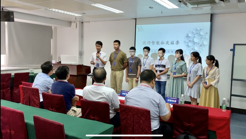 广东赛区自报名启动以来,共有218个项目报名提交比赛资料参加初赛,优行团队在吴佩君老师、林哲老师、朱梓谊老师的精心指导下,凭借《优行智能公交站亭》项目与重点本科院校和其他高职院校同场pk,经过两轮筛选,与其他81支队伍共同晋级广东赛区决赛。6月2日,决赛路演现场,团队负责人2016级移动互联网应用技术1班郑旭涛同学在项目展示和答辩环节中思路清晰、逻辑严谨,获得评委们对项目的好评,并被大赛组委会推荐参加粤港澳大湾区赛。