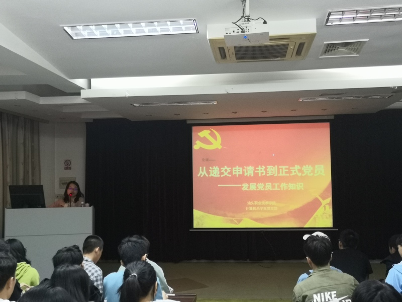计算机系于11月4日和11月9日分别在本部和东墩校区举办题为“从递交入党申请书到正式党员——发展党员工作知识”的党课,授课人为学生党支部书记陈子艺老师,参加人员为党员、入党积极分子、申请入党人员等。陈子艺老师围绕“一个根据、两个原则、三个方面、五个阶段”的内容,阐述了发展党员工作的要点,重点介绍了从申请入党到入党积极分子的确定和培养教育、发展对象的确定和考察、预备党员的接收以及预备党员的教育考察和转正这“5个阶段、25个流程”的工作内容。强调了发展党员工作时间上的要求,以及常见的六个问题。