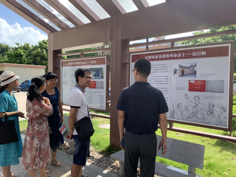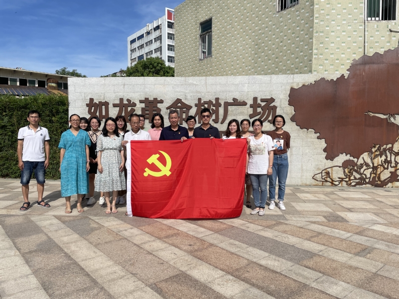 如龙革命树广场是汕头市民“家门口的红色学堂”,这棵“革命树”见证了汕头第一个农村“苏维埃”的诞生。1927年南昌起义后,起义军在周恩来等同志率领下进入潮汕地区,建立了红色革命政权。受此影响,共产党员纪大头在参加南昌起义后随主力部队南下回家乡养伤期间,与纪经其、纪经如、纪喜龙等一批革命志士经常在官埭尾村外大榕树下秘密集会,创建农民武装,组织农民暴动,建立官埭苏维埃政权,打击地主恶霸,没收地主粮食,接济贫困农民,革命声势日益壮大,为人民解放事业不畏艰险、矢志斗争。在参观过程中,计算机系党总支书记刘钦创同志组织全体党员在党旗雕塑前,面对党旗庄严宣誓,重温入党誓词。