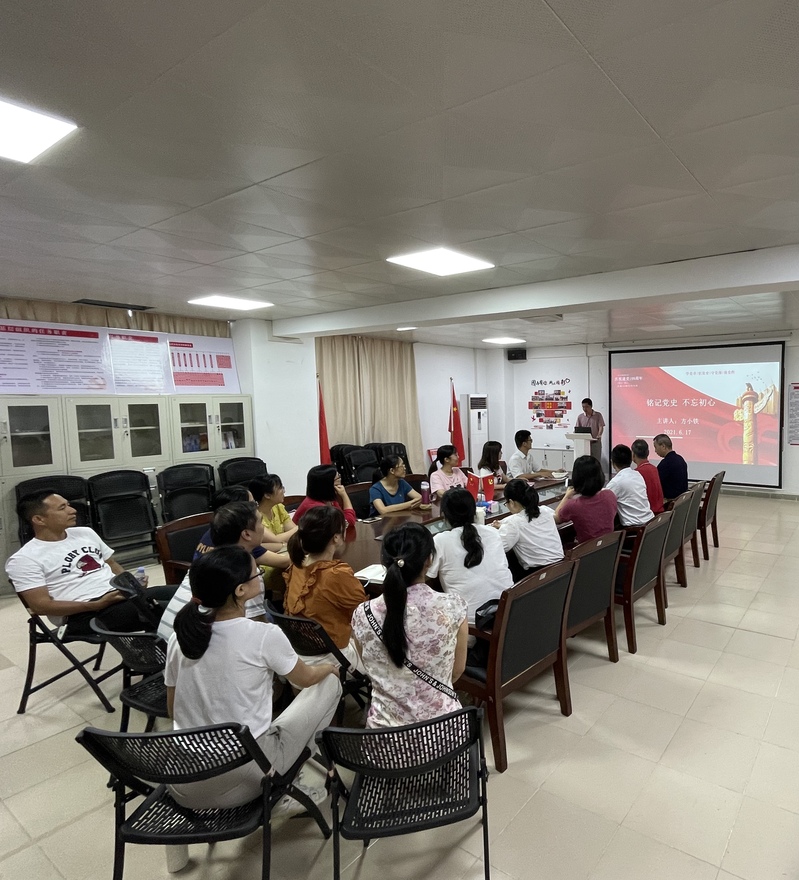 随后,方小铁副书记从“一百年的奋斗史、不忘入党初心牢记党员身份、时刻不忘感党恩、一心一意跟党走”四个方面进行详细讲解,带领大家回顾了中国共产党走过的辉煌历程,缅怀党的丰功伟绩,阐述了中国共产党成立之初的艰难发展历史,生动再现一个个历史真实案例,强调中国共产党发展至今所取得的成绩来之不易。要求全体党员师生要认真深入的学习党史,把对党的绝对忠诚落实到一言一行、体现在一点一滴、贯穿于一生一世。