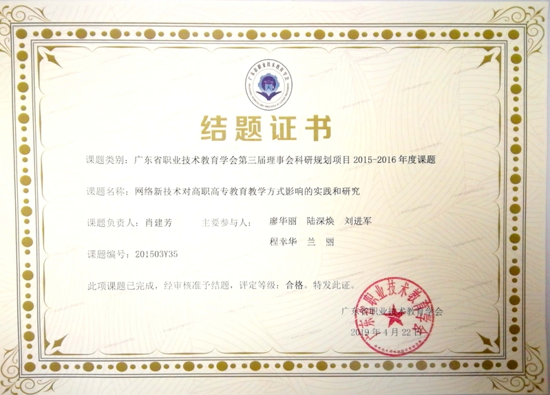 网络新技术对高职高专教育教学方式影响的实践和研究结题证书