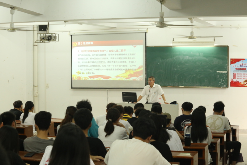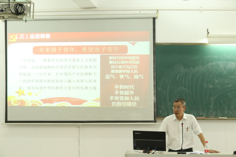 9月28日下午,计算机系在教学三区110举行新学期第一堂思政课,系党总支书记、主任刘钦创以“学党史悟思想,成就时代新人”为题为2020级学生上了一场精彩的“思政第一课”,系师生代表100余人现场聆听授课。
