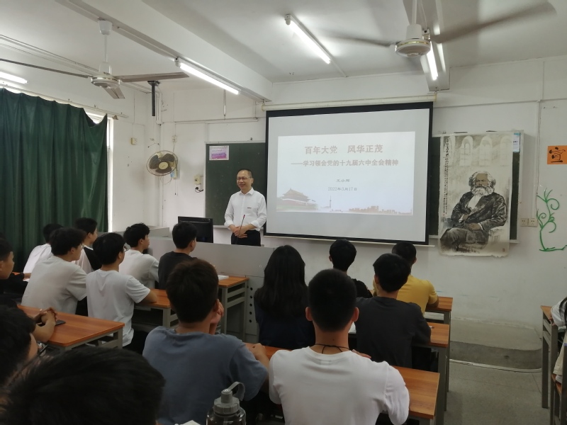 3月17日上午,学院党委书记王小辉在院本部教学一区B302教室以《百年大党,风华正茂——学习领会党的十九届六中全会精神》为题,为计算机系2021级软件技术2班的同学们开讲2022年春季学期“思政第一课”。