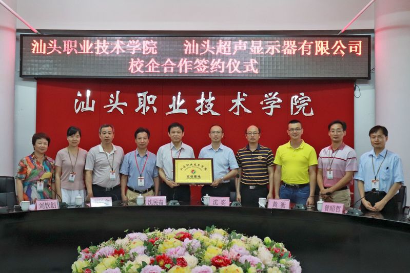 2018年5月22日下午,学院与汕头超声显示器有限公司在院本部图书信息大楼六楼会议室举行校企合作签约仪式。仪式上,校企双方签署了《校企合作框架协议书》,并举行实训基地授牌仪式。