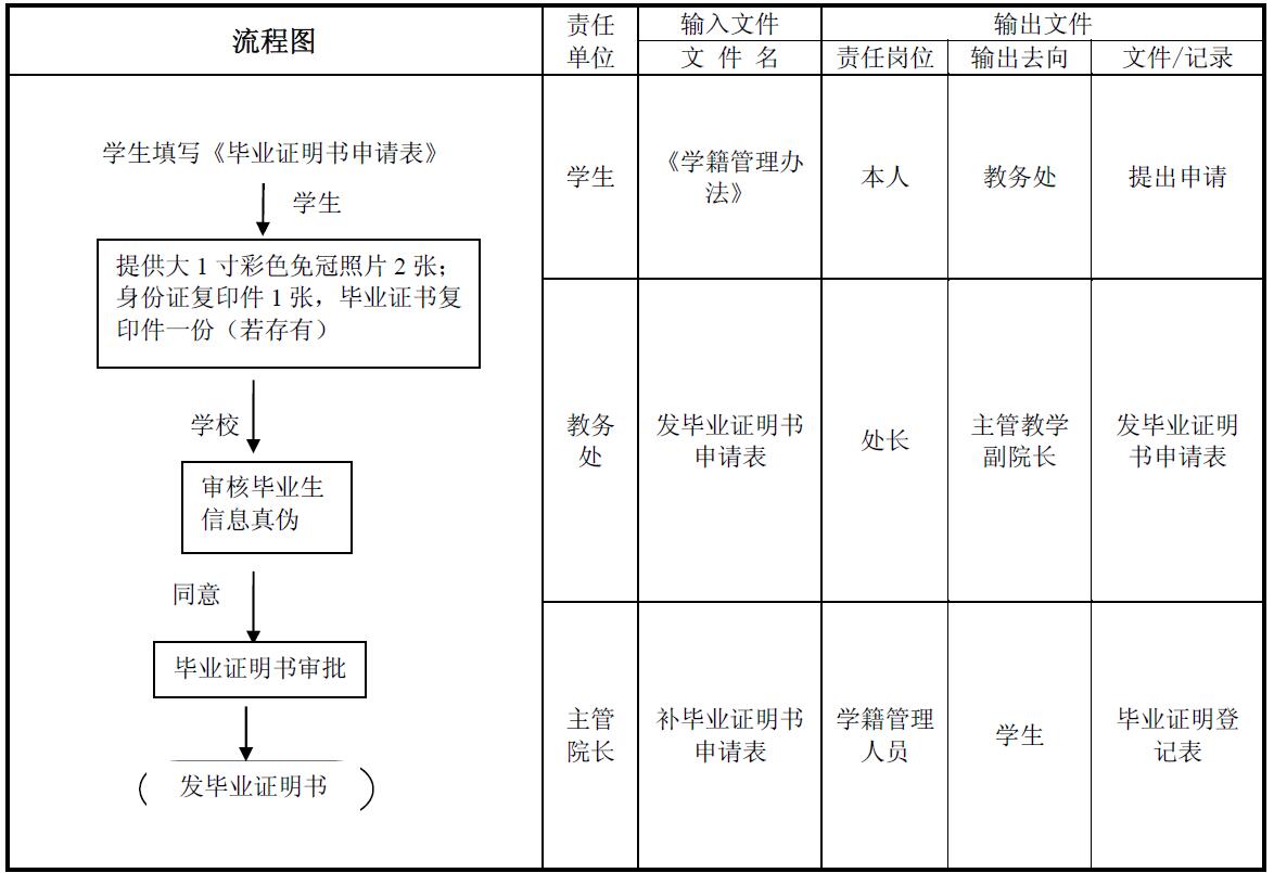 补办毕业证明书工作程序