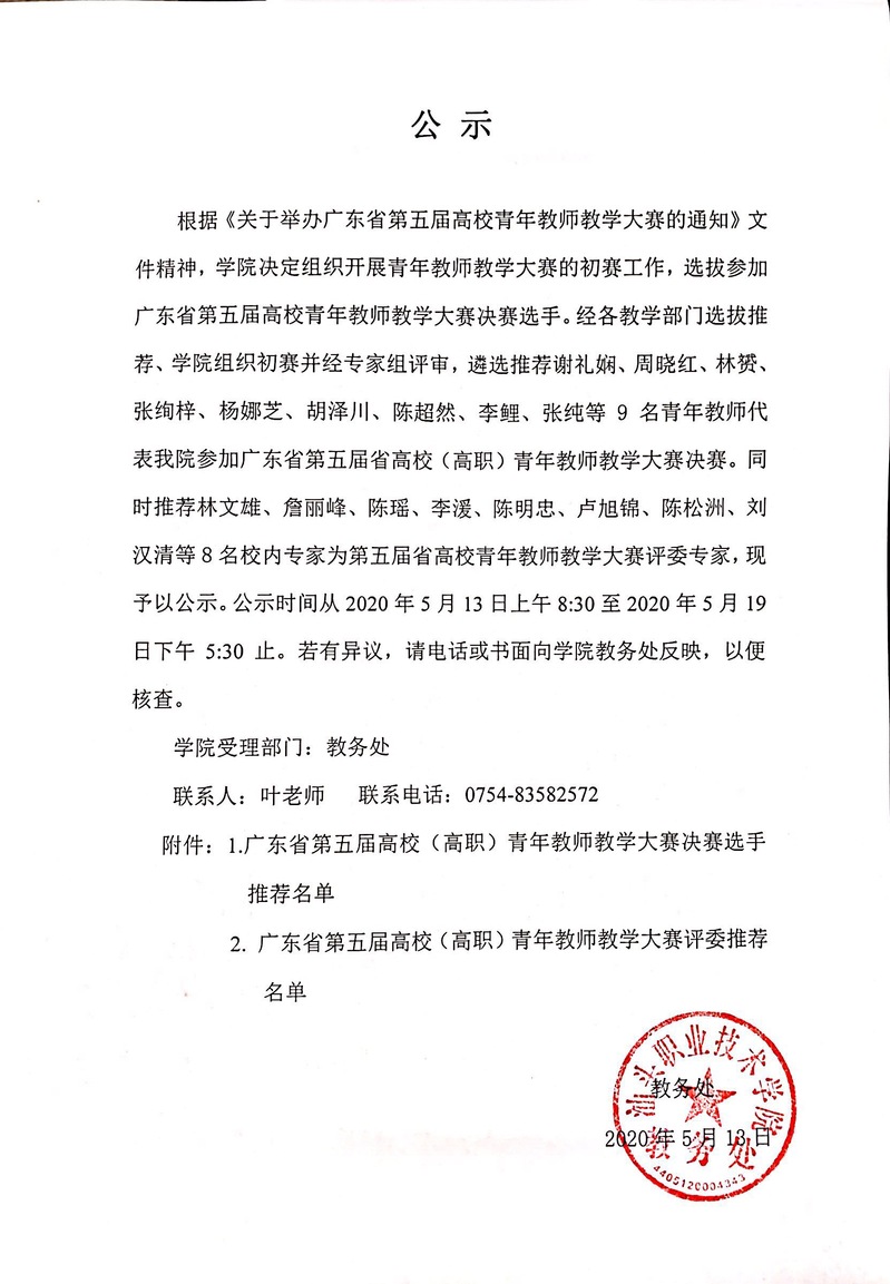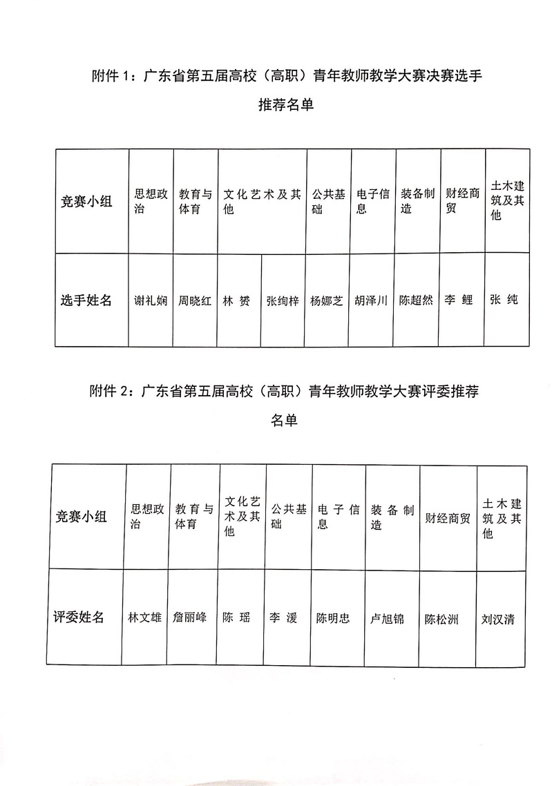 公示:广东省第五届高校(高职)青年教师教学大赛决赛选手推荐名单