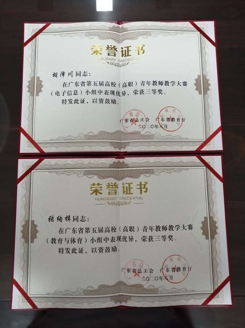 广东省第五届高校青年教师教学大赛,从4月启动,至8月初总决赛,从学校初评、网络评比到决赛,历时近四个月。由全省所有高职院校筛选推荐的674名青年教师选手,积极参加了大赛。我院选送的9名选手中,胡泽川、张绚梓两位老师脱颖而出,获得大赛三等奖。