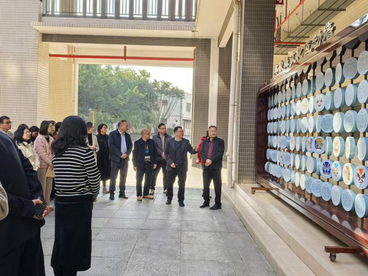 20241213日,怀集县职业技术学校党总支书记肖星勇带领政治经济科组、音乐科组、计算机科组教师代表到我校进行调研交流。在副校长林育青的带领下参观了英歌舞传承发展中心。通过观看展示、听取讲解和互动体验,深入了解这一非物质文化遗产在当代教育中的保护与推广情况,感受传统文化的魅力及其在现代教育中的应用价值。