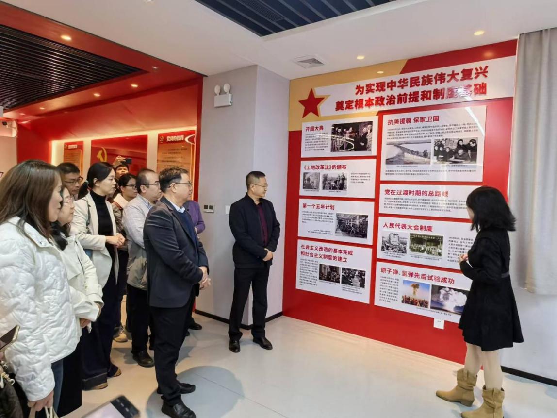 接着,怀集职校一行人又参观了我校的思想政治教育基地,了解该基地在学生思想道德建设和爱国主义教育方面的作用,体验其独特的育人模式和实践成果,包括多媒体教学资源的应用、虚拟现实技术在思政课上的创新使用等。