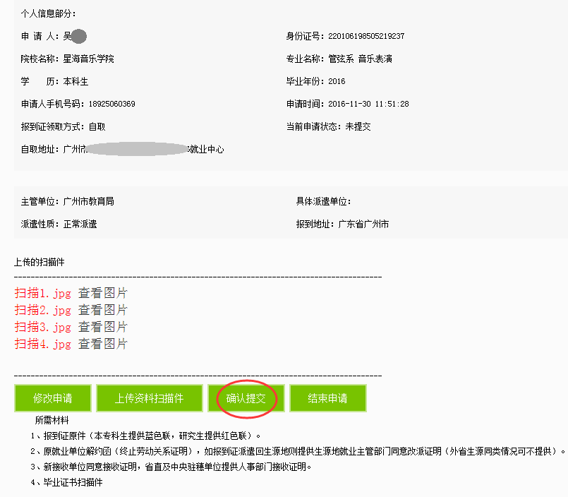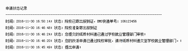 6、提交纸质材料并等待审批。学生可直接向学校提交改派的纸质材料。并可在网上改派申请的页面查询办理进度。