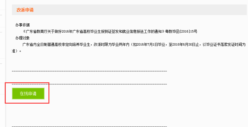 按照《广东省网上办事大厅建设规范V1.0》(粤经信网办函〔2013〕1491号)的相关要求,为简化高校毕业生就业派遣办事流程,提升高校毕业生就业服务水平,省高校毕业生就业指导中心定于2016年12月6日启动网上调整改派工作。现就有关事项通知如下: