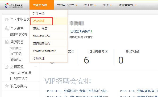 毕业生网上提交调整改派申请具体操作流程