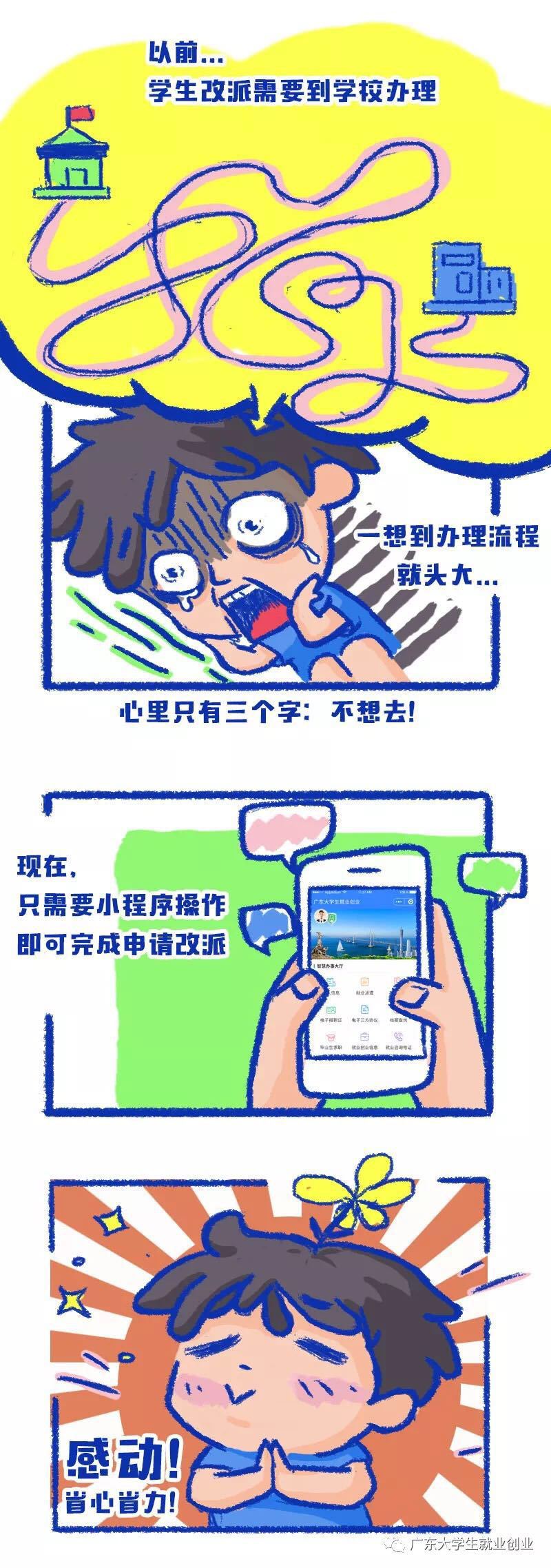 从8月1日起,“广东大学生就业创业”和“粤省事”微信小程序同步开通广东省高校毕业生报到证在线申请改派服务功能啦!