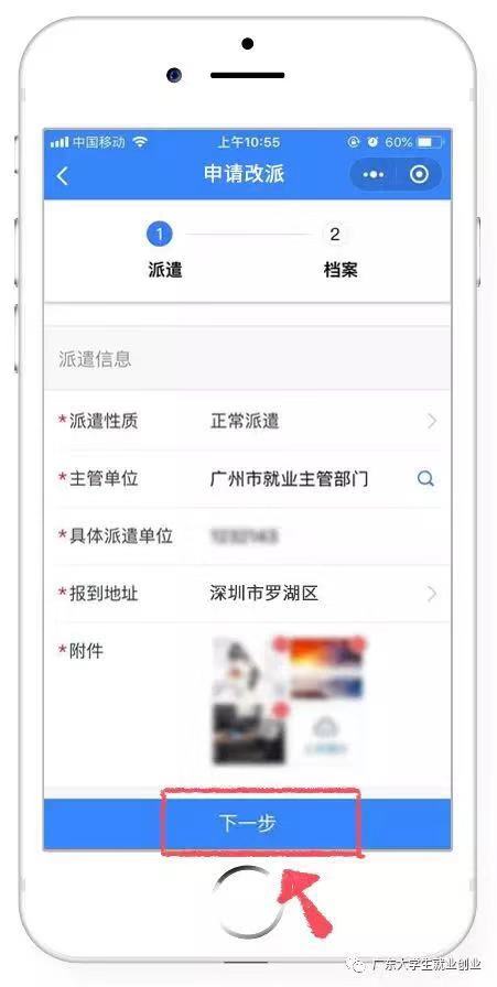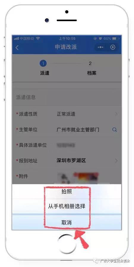 3、在提出调整改派时,还必须上传有关材料扫描件或照片,在附件处点击上传照片即可。