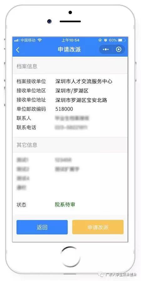 备注:定向生、委培生不允许提交改派申请