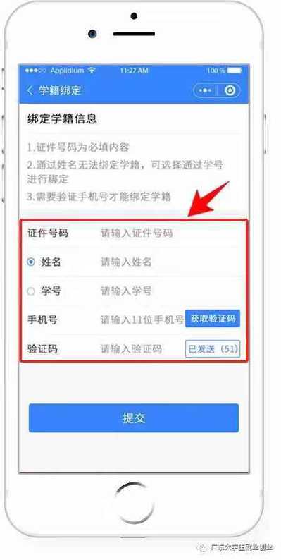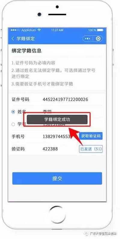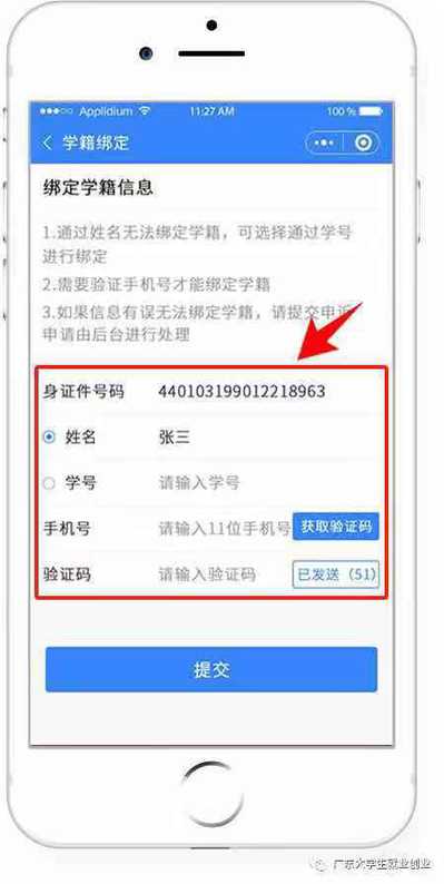 2. “绑定学籍信息”并“提交”。