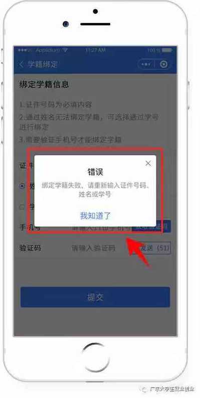 3、若绑定学籍失败,请按提示重新绑定,成功后提交。