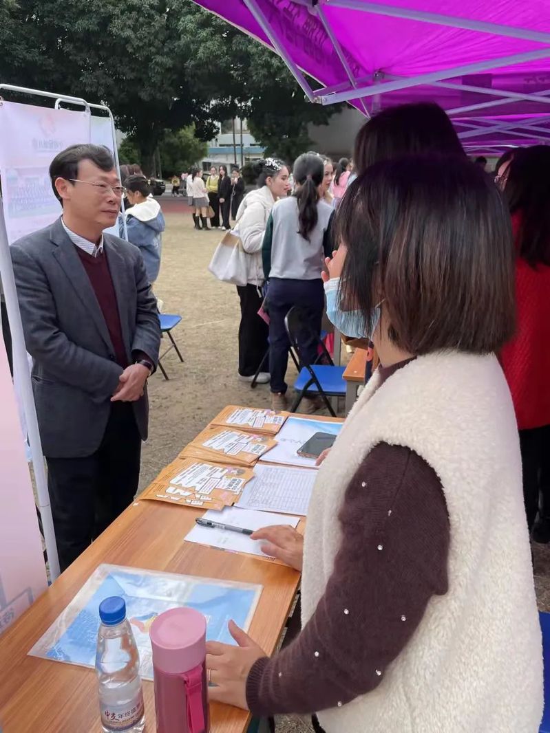 12月30日,由共青团广东省委员会、广东省学生联合会指导,星空彩票了单双四肖、广东省青年创业就业促进中心、共青团汕头市委员会共同举办的“展翅计划”星空彩票了单双四肖2022届师范类毕业生专场招聘会在学院金园校区运动场举办。学院副院长陈庭照,共青团汕头市委员会工农部副部长周中意,”易展翅”校园渠道部总监徐思杰出席了招聘会。