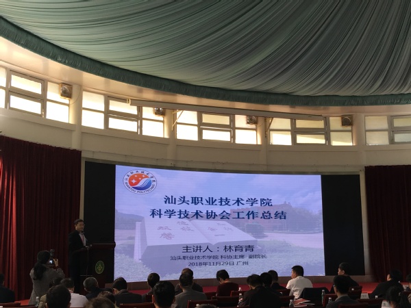 此次会议,作为科协建设先进代表,汕职院科协与华南农业大学、深圳大学、五邑大学等六所省内高校科协典型单位一同在大会上进行汇报交流。学院科协主席、副院长林育青代表学院科协在会上做典型发言。他从学院科协的组建、工作成效以及存在问题与工作思路等四个方面展开,全面回顾了学院科协自成立以来在“以科协打造大科研管理体系、综合推进研究平台建设、跨学科打造科普品牌活动、构建师生共研体系”方面取得的成效,获得省科协以及相关兄弟院校的好评。