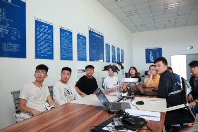 随后参观队伍分为两批进行轮训,具体内容如下:(1)设备参观:塔架系统、叶片及变桨系统、偏航系统、主轴与齿轮箱、联轴器等风力发电机组基本组成;35kV开关柜、GIS设备、SF6断路器、避雷器、变压器、低压柜、电抗器、隔离开关、真空断路器等变电一次设备;保护装置、端子箱、防误装置等变电二次设备。(2)理论学习:双馈型与直驱型发电机的区别、优缺点与应用现状,风电场检修维护规程与两票三制(工作票、操作票,交接班制、巡回检查制、设备定期试验轮换制)等安全规范。最后由风电场工程师对光伏系统和风力发电系统进行了简要的对比,直观地通过一线现场让学生巩固课堂理论知识。