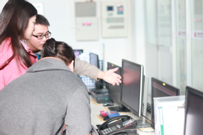 随后参观队伍分为两批进行轮训,具体内容如下:(1)设备参观:塔架系统、叶片及变桨系统、偏航系统、主轴与齿轮箱、联轴器等风力发电机组基本组成;35kV开关柜、GIS设备、SF6断路器、避雷器、变压器、低压柜、电抗器、隔离开关、真空断路器等变电一次设备;保护装置、端子箱、防误装置等变电二次设备。(2)理论学习:双馈型与直驱型发电机的区别、优缺点与应用现状,风电场检修维护规程与两票三制(工作票、操作票,交接班制、巡回检查制、设备定期试验轮换制)等安全规范。最后由风电场工程师对光伏系统和风力发电系统进行了简要的对比,直观地通过一线现场让学生巩固课堂理论知识。