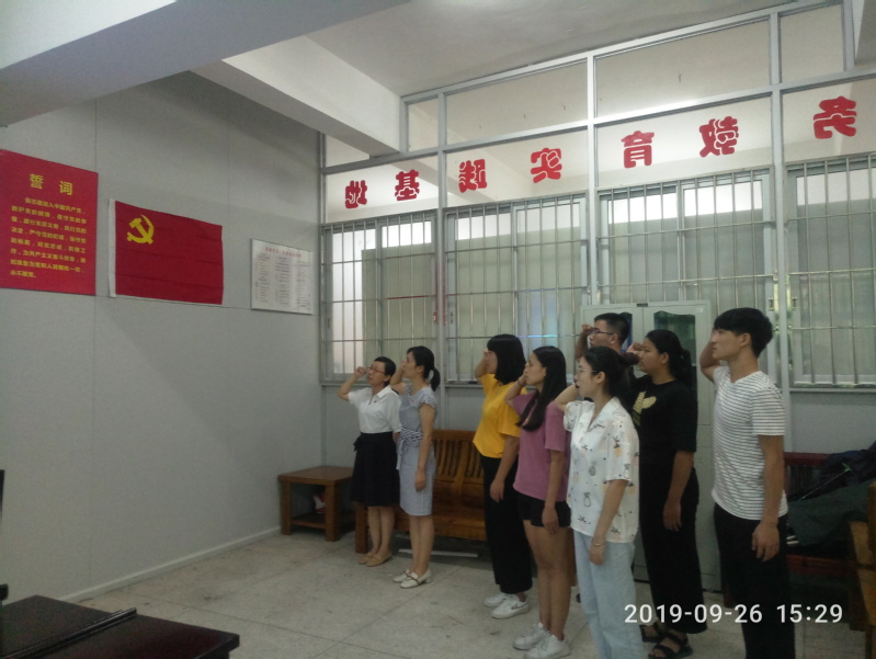 2019年9月26日,在喜迎新中国建国70周年之际,人文社科系第二党支部在金园校区综合楼3楼党员服务教育实践基地,举行了庄严而隆重的预备党员集体宣誓仪式。本次宣誓仪式由党支部书记伍娜同志领誓,人文系第二支部全体党员参加了此次活动。