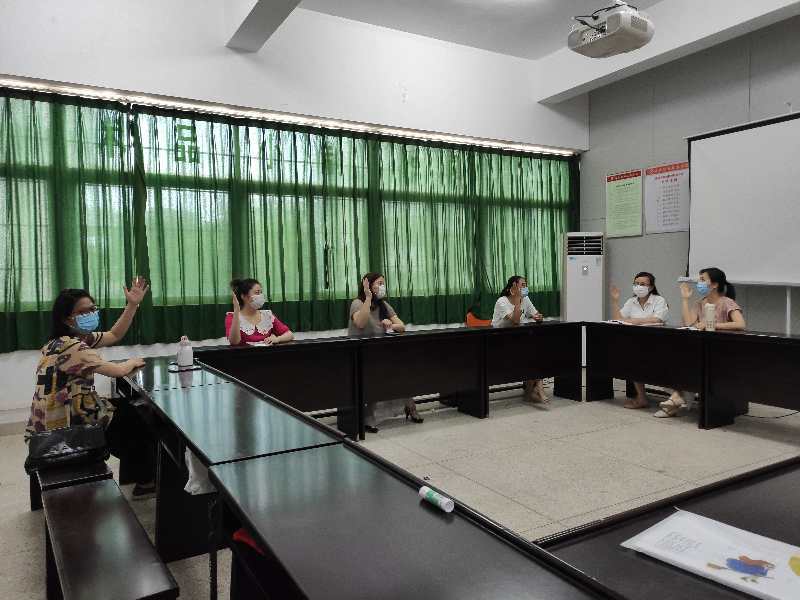 在这特殊的时期,与会的党员们都戴着口罩,间隔一米就坐,与以往的党日活动相比,本次会场要显得更为简单朴素,但现场的气氛却不减热烈和庄重。活动的第一个环节,党支部书记伍娜同志带领全体党员为本月过“政治生日”的党员同志们送上“生日祝福”,随后冯旖旎同志作为代表,发表了感言,她表示通过这项活动,再次回望了自己的入党初心,对标先进前辈,更激发了坚持为人民服务的动力,同时进一步强化了身份意识,增强了自身的组织归属感和身份认同感,并再一次表示自己将在教书育人的工作中坚持初心,做好本职工作。
