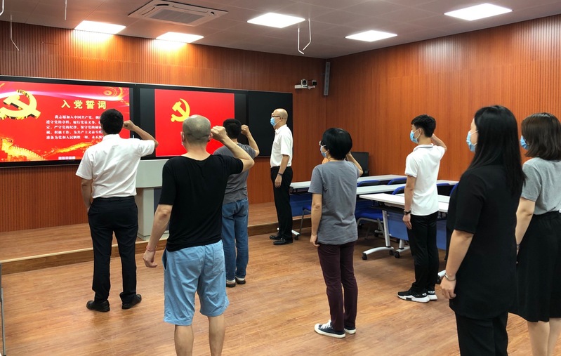 最后,在黄小铭同志的带领下,全体党员重温了入党誓词,大家面向党旗,举起右手,庄严宣誓。回顾铮铮誓言,坚定理想信念,牢记职责使命,重拾入党初心。