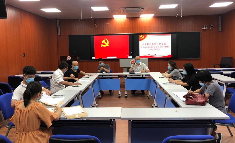 生命重于泰山,疫情就是命令,防控就是责任。面对突发的新冠肺炎疫情,为了有效防控疫情,充分发挥基层党组织战斗堡垒作用和共产党员先锋模范作用,人文社科系第三党支部把“主题党日”和疫情防控有机结合起来,于2020年5月17日下午在金园校区三号楼直播室开展“让党旗在校园疫情防控工作中飘扬”的主题党日活动。