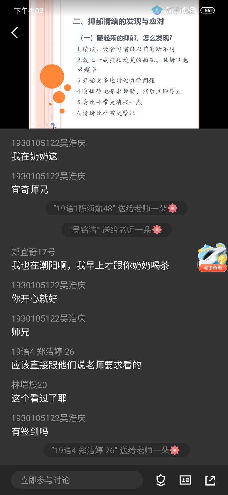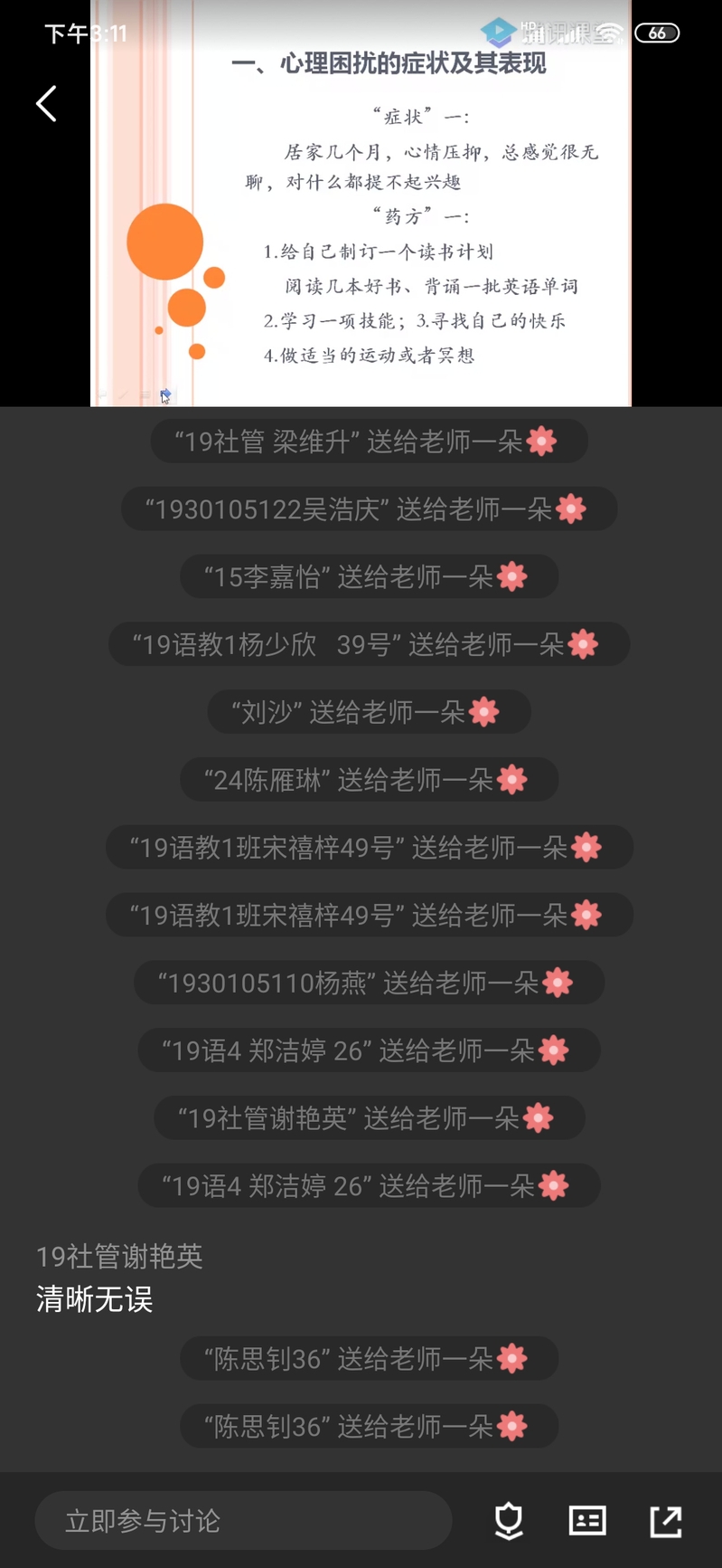 这场心理健康教育课,犹如一场及时雨,为备受疫情影响的同学们带来满满干货,指明了前进的方向,让学生的前行步伐更坚定,更从容。