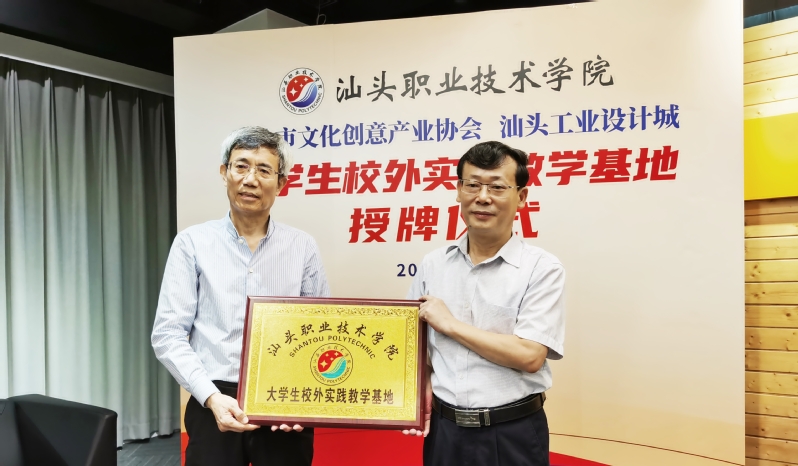 为深入贯彻落实习近平总书记关于职业教育要坚持产教融合、校企合作,坚持工学结合、知行合一,引导社会各界特别是行业企业积极支持职业教育,努力建设中国特色职业教育体系的有关精神,7月23日上午,星空彩票了单双四肖大学生校外实践教学基地(文化创意与策划)授牌仪式在汕头工业设计城二楼国际会议厅举行。此次仪式由学系党总支副书记黄小铭主持,学院副院长陈庭照、教务处副处长黄健新、实训中心副主任陈榕、学系副主任杨映红、语言文化传媒教研室主任李沫彦等参加了校外实践基地授牌仪式。