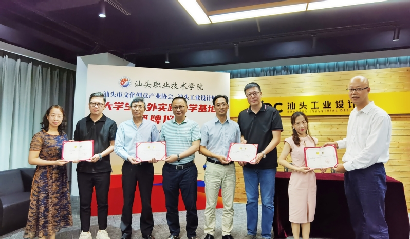 为深入贯彻落实习近平总书记关于职业教育要坚持产教融合、校企合作,坚持工学结合、知行合一,引导社会各界特别是行业企业积极支持职业教育,努力建设中国特色职业教育体系的有关精神,7月23日上午,星空彩票了单双四肖大学生校外实践教学基地(文化创意与策划)授牌仪式在汕头工业设计城二楼国际会议厅举行。此次仪式由学系党总支副书记黄小铭主持,学院副院长陈庭照、教务处副处长黄健新、实训中心副主任陈榕、学系副主任杨映红、语言文化传媒教研室主任李沫彦等参加了校外实践基地授牌仪式。