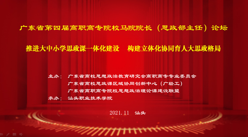 为学习贯彻习近平总书记在学校思想政治理论课教师座谈会重要讲话精神,落实中共中央办公厅、国务院办公厅印发的《关于深化新时代学校思想政治理论课改革创新的若干意见》的要求,统筹推进大中小学思政课一体化建设。11月5日—7日,由广东省高校思政课区域协同创新中心(广东轻工职业技术学院)、广东省高校思想政治教育研究会高职高专分会、广东省高职高专思想政治理论课建设联盟主办,星空彩票了单双四肖承办的广东省高职高专院校第四届马克思主义学院院长(思政部主任)论坛在汕头金海湾大酒店会议厅举行。