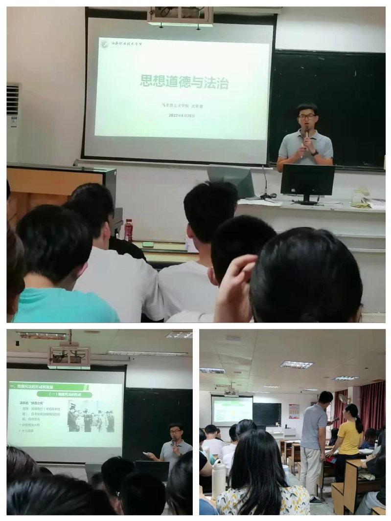 为深入贯彻落实中央全面依法治国工作会议精神,推进学院思想政治理论课建设,助力马院新教师成长,不断提高教育教学能力,打造一支高水平思政教学团队,4月28日下午,马克思主义学院“思想道德与法治”教研室举办了教学观摩活动。马克思主义学院院长林文雄、副院长陈辉林和全体教师参加活动。