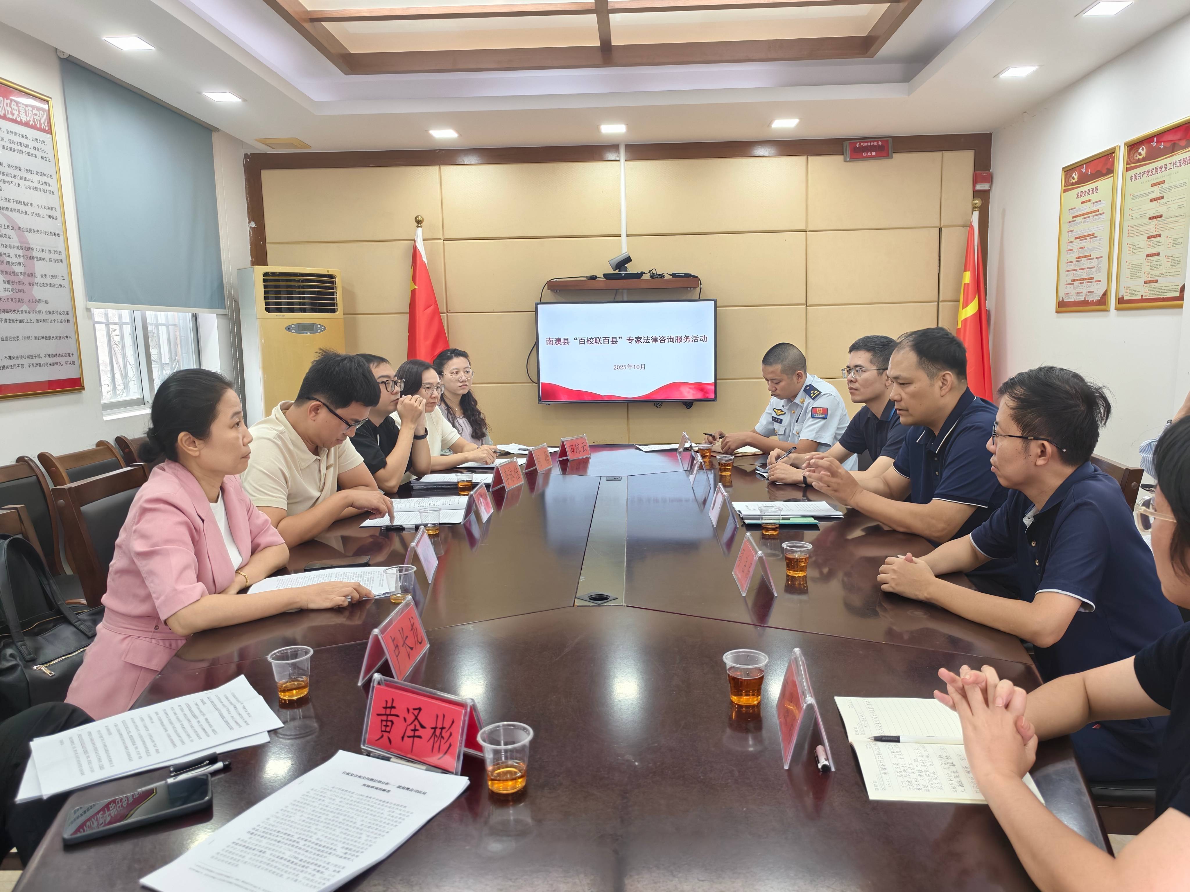 为深入贯彻落实“百校联百县”协同发展战略,充分发挥高校法学专业人才优势,助力基层法治建设提质增效,10月20日下午,马克思主义学院法律服务团队共7人赴南澳县开展“百校联百县”法律专题培训暨司法实务座谈交流活动。活动由南澳县司法局副局长林悦金主持,南澳县司法局相关人员、南澳县涉外法治工作相关单位负责人及业务骨干参加。