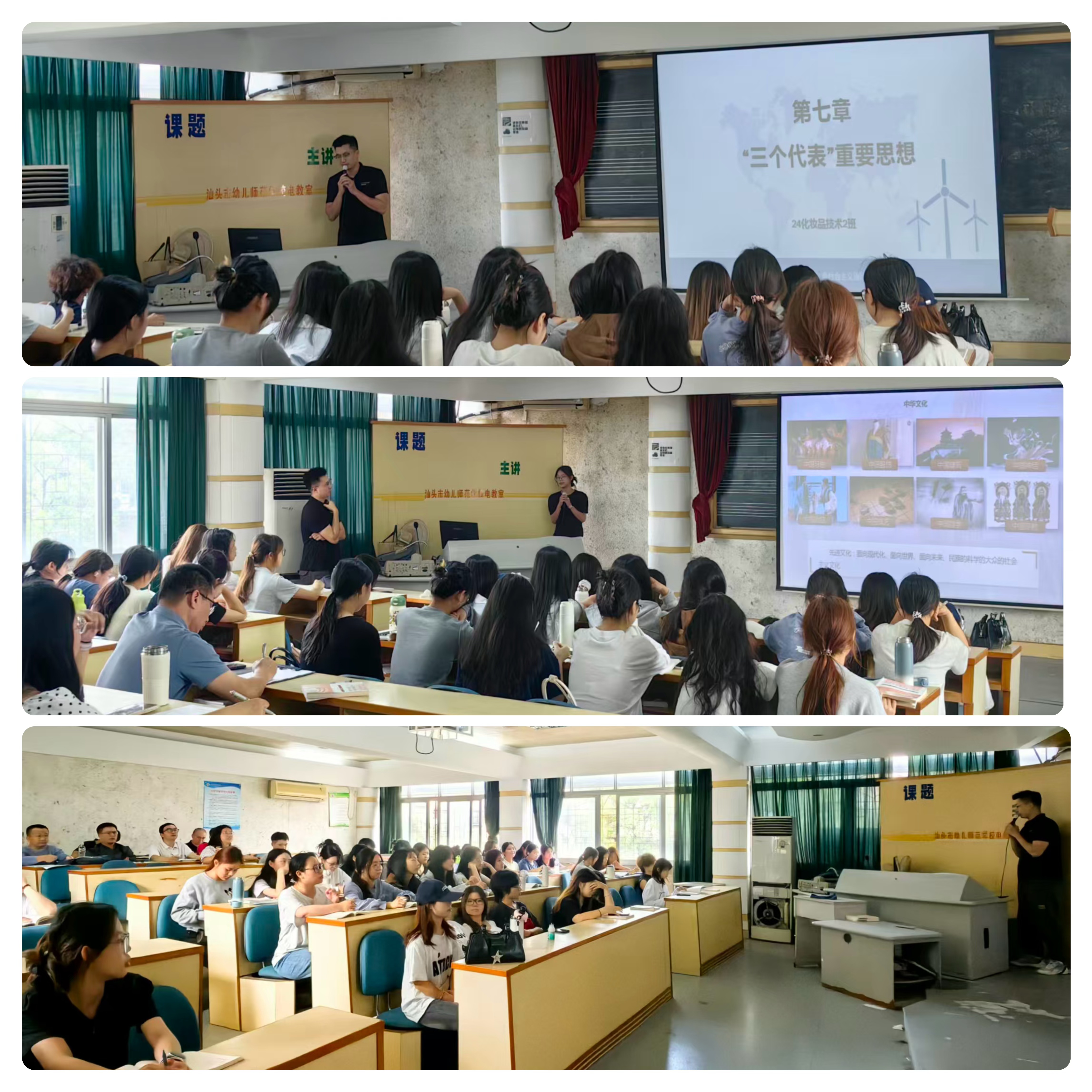 公开课由黄泽彬老师主讲,授课内容为《“三个代表”重要思想》。围绕“‘三个代表’重要思想核心观点”这一主题,黄泽彬老师首先带领学生回顾了20世纪80年代末90年代初国内外发生的重大历史事件,引导学生思考“三个代表”重要思想所要回答和解决的重大问题,同时以问题为导向,通过理论阐释、案例剖析、自主探究等多元化教学手段,在立足教材的基础上创新教学思路,重点拆解 “三个代表”重要思想的核心内涵,并结合先进生产力、先进文化等时代创新实践素材,使学生更直观理解“三个代表”重要思想的时代价值。黄泽彬老师教学思路清晰,循序渐进,有理论阐释、有师生互动,展示出良好的专业素养和教学能力。