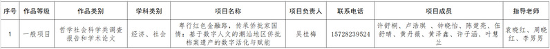 各处(室)、院(部)、中心(馆)并各二级院系团委,教职工团支部: 为响应省委省政府实施创新驱动发展战略的号召,按照《广东省科技创新战略专项资金(大学生科技创新培育)管理办法》有关规定,校团委按期开展2024年度“攀登计划”专项资金项目申报工作,经组织校外专家评审后,共评选出1个一般项目。现将评选结果予以公示: