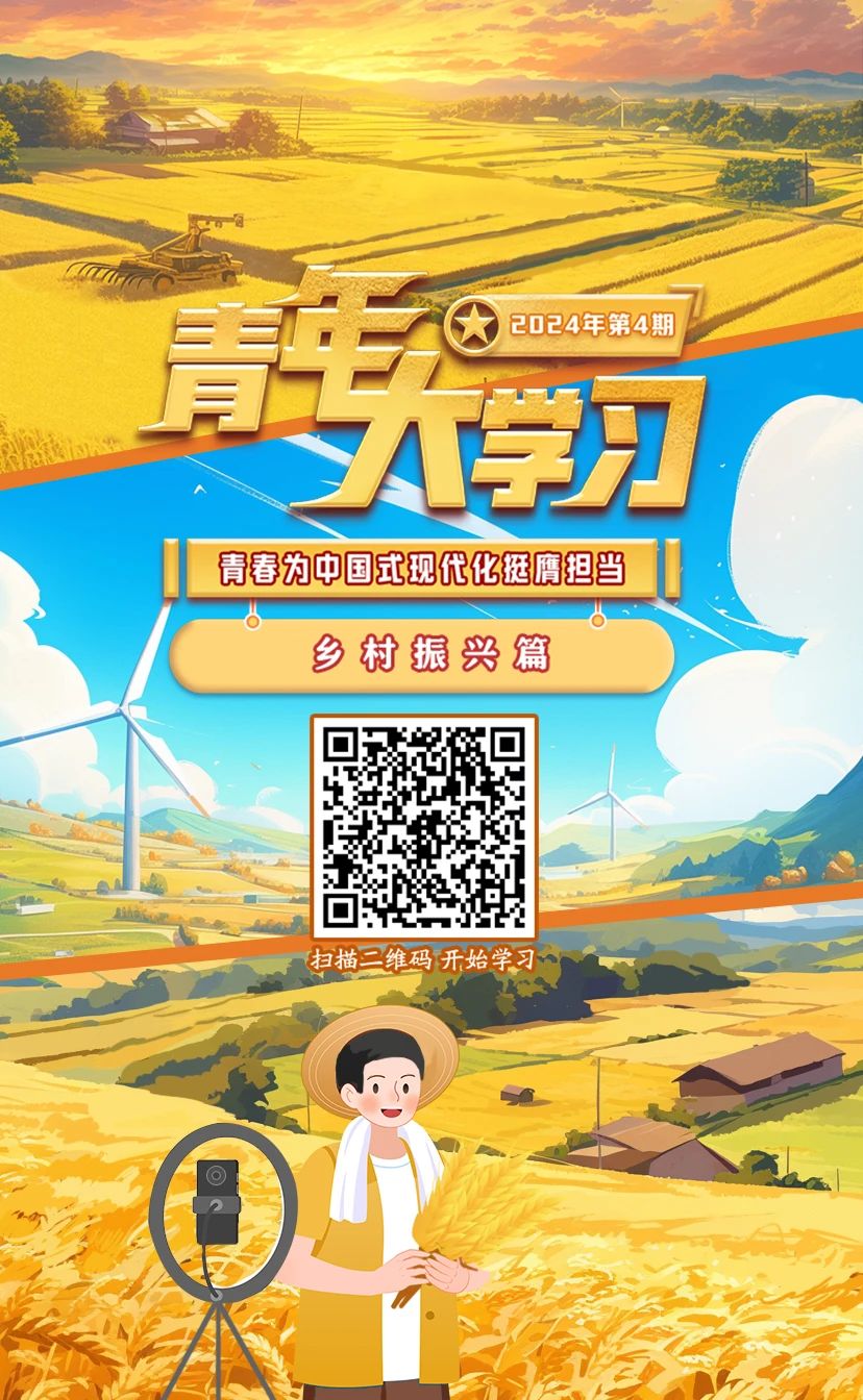 学习党的创新理论,争做新时代好青年。青年大学习推出“青春为中国式现代化挺膺担当”系列特辑,今天和大家见面的是第三期“乡村振兴篇”。新时代以来,以习近平同志为核心的党中央始终把解决好“三农”问题作为全党工作的重中之重,坚持农业农村优先发展,出台一系列强农惠农政策,实现了农业连年丰收、农民收入持续提高、农村社会和谐稳定,我国农业现代化建设取得了长足发展,具备了由农业大国向农业强国迈进的基本条件,加快建设农业强国正当其时、意义重大。新时代农村是充满希望的田野,是干事创业的广阔舞台。广大青年要把握历史机遇,坚持把课堂学习与乡村实践结合起来,通过深入田间地头、走进农家院坝,把科技成果带到生产一线,把论文写在大地上,让科技在充满希望的田野上生根发芽、开花结果,实现科技赋能农业稳产增产、农民稳步增收。要发扬“自找苦吃”的精气神,把乡村田野、生产一线当做广阔课堂,将职业生涯与农业农村的广阔天地紧密相连,用脚步丈量土地、用行动践行初心,在服务“三农”过程中不断厚植爱农情怀,练就兴农本领,在乡村振兴的大舞台上施展抱负、挺膺担当、建功立业。