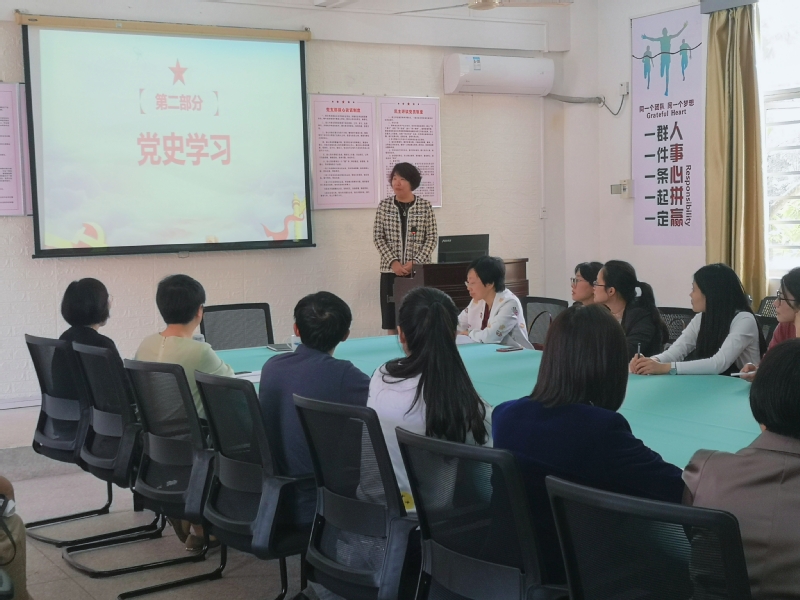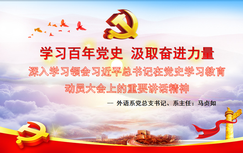 为庆祝中国共产党成立100周年,3月18日下午,外语系党总支书记马贞如同志在教学二区B302会议室为全体党员教师上党课。本次党课主题为《学习百年党史 汲取奋进力量》。