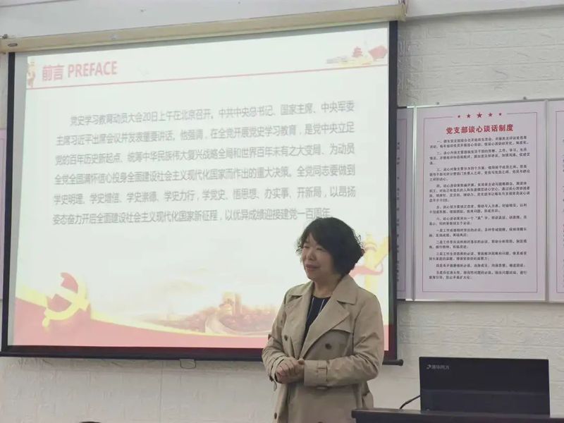 为深入贯彻习近平总书记在党史学习教育动员大会上的重要讲话精神,培养学生的爱国爱党之情,砥砺强国之志,实践报国之行,3月23日下午,外语系党总支书记、系主任马贞如同志在教学二区B302会议室给外语系学生上党课。党课主题为“学习百年党史,汲取奋进力量”。