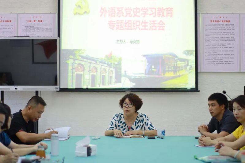 7月8日中午,外语系党总支召开了全体党员大会暨各支部党史学习教育专题组织生活会。会议由党总支书记、系主任马贞如同志主持。