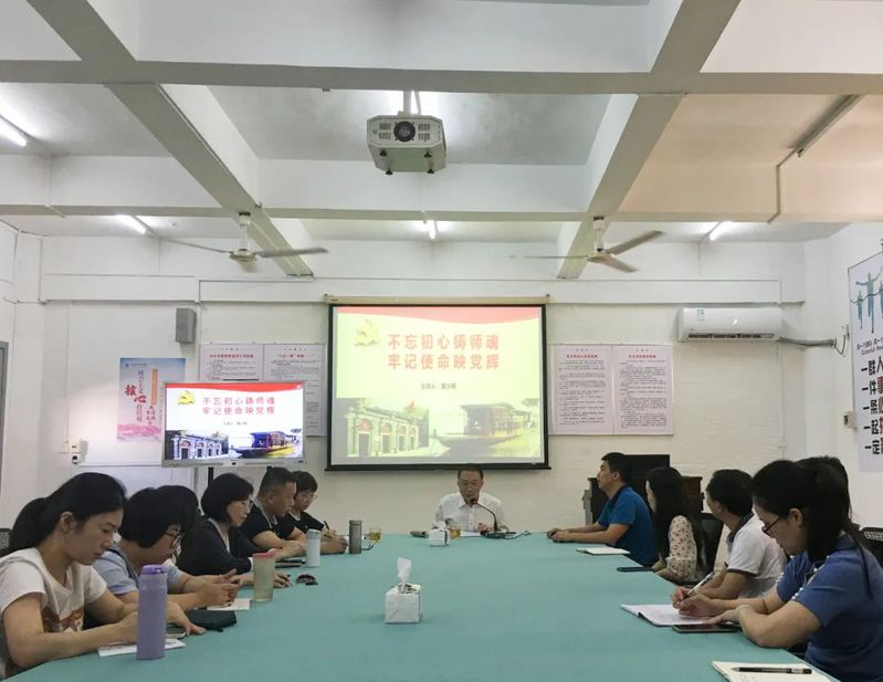 为深入学习贯彻习近平新时代中国特色社会主义思想,巩固深化“不忘初心、牢记使命”主题教育成果,主动翻开“党史书”,用心上好“百年党史”这门必修课,从党史中汲取丰厚的思想滋养,落实“为人师表,立德树人”的根本任务,弘扬新时代教师道德风尚,进一步激发广大师生的爱党爱国情感,6月17日下午,学院党委副书记、纪委书记黄少明在院本部教学二区B302会议室为外语系全体党员师生开展“不忘初心铸师魂,牢记使命映党辉”主题党课。外语系党总支专职副书记钱光健主持会议。