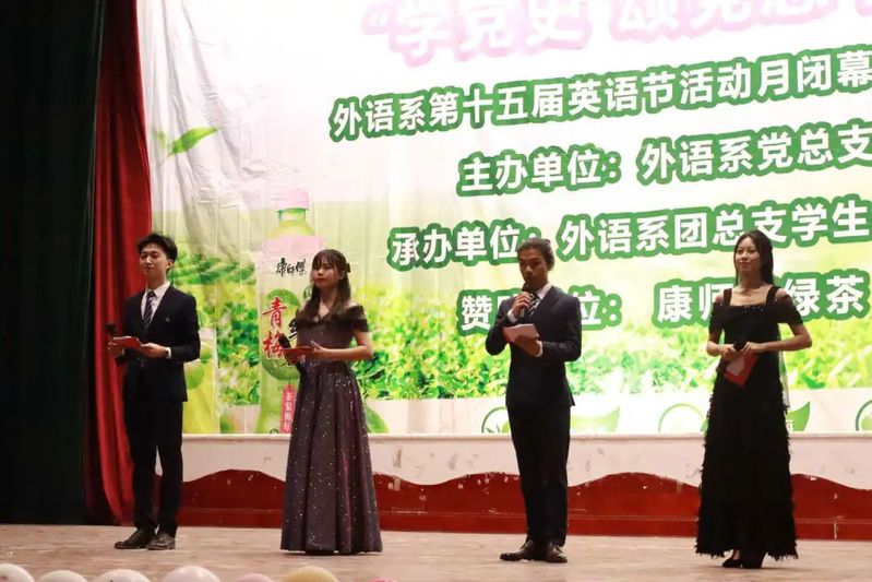 为进一步丰富外语系学子的校园生活,活跃校园气氛,为同学们提供一个展现自我、提高英语口语能力的舞台,外语系于5月28日晚在大礼堂举行“学党史 颂党恩 跟党走”第十五届英语节活动月闭幕式暨话剧决赛。外语系党总支书记、系主任马贞如,外语系党总支专职副书记钱光健,外语系李泽举副主任,外语系应用英语专业教研室主任文臻老师,外语系公共英语专业教研室主任刘丽敏老师,外语系学生科庄扬科长,外语系系办公室郑玉纯主任及外语系教师、辅导员和19级、20级学生参加了本次晚会。