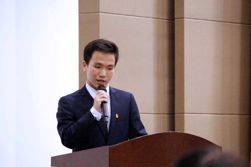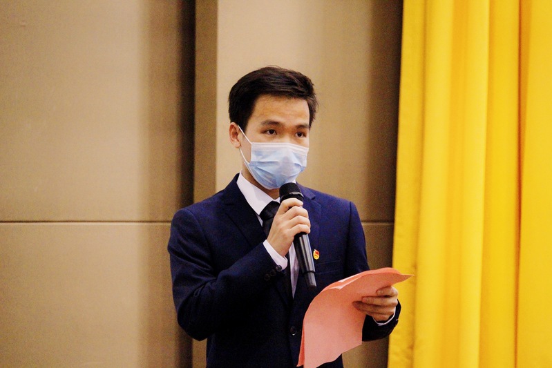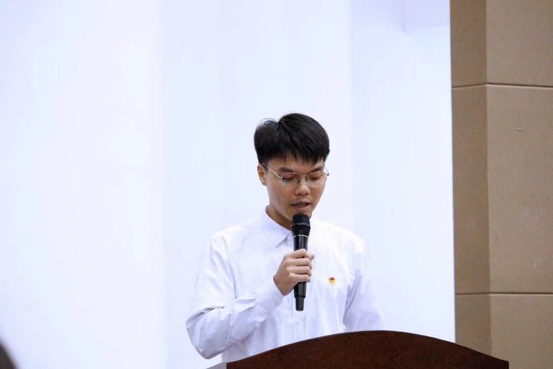 学院团委副书记邱哲同志发表讲话,他代表学院团委充分肯定了外语系团委在过去一年来在共青团工作上所取得的成绩,并向大会的胜利召开表示热烈的祝贺。他指出,过去一年里,外语系各团学组织以习近平新时代中国特色社会主义思想为指导,认真学习贯彻党的十九大和十九届历次全会精神,以上级团委“灯塔工程”为指引,推动党史学习教育常态化,在外语系党总支的正确领导下积极融入学院中心工作,努力探索,勇于实践,在思想育人、组织育人、实践育人、文化育人、管理育人和服务育人等方面都取得了新的进展和成效。