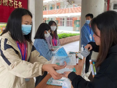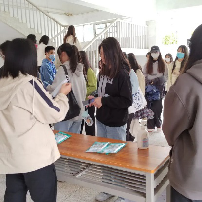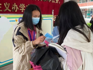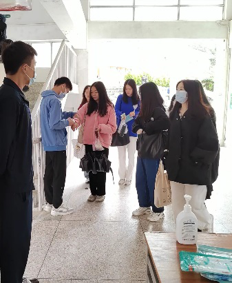 2022年3月28日-4月1日,早上7:30分,体工作人员准时就位,在公告栏处为同学们分发口罩,测量体温,提醒同学们戴好口罩,要勤洗手,清明假期期间非必要不离校。如需要外出,一定要积极佩戴口罩做好疫情防护工作。小粉们坚守自己的岗位,以身作则,戴好口罩的同时才开展防疫宣传动员。