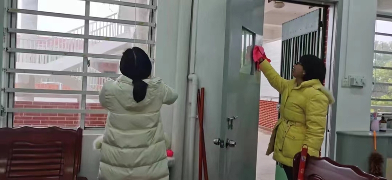 2月25日上午,系党总支专职副书记周乐新、系学生科科长庄扬及辅导员老师们带领学生会工作人员检查四号楼及七号楼的卫生情况,叮嘱同学们要注意用电安全。周乐新副书记带动学生们擦洗宿舍门窗、打扫走廊卫生,引导学生积极主动参与卫生建设活动,营造卫生整洁的生活环境。同学们积极参与本次爱国卫生运动,同时也表示今后在日常生活中会更加注意校园、宿舍、个人卫生,做好个人卫生防护,共同营造干净整洁,健康有序的美好校园。