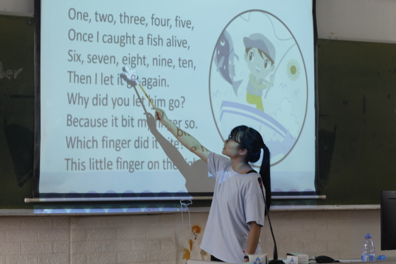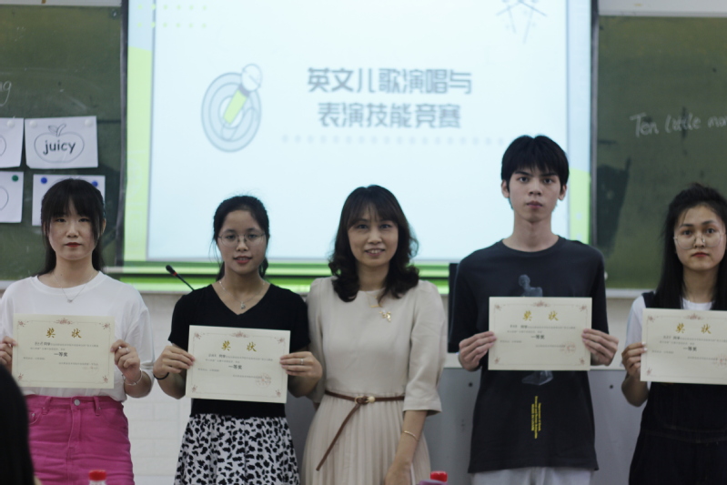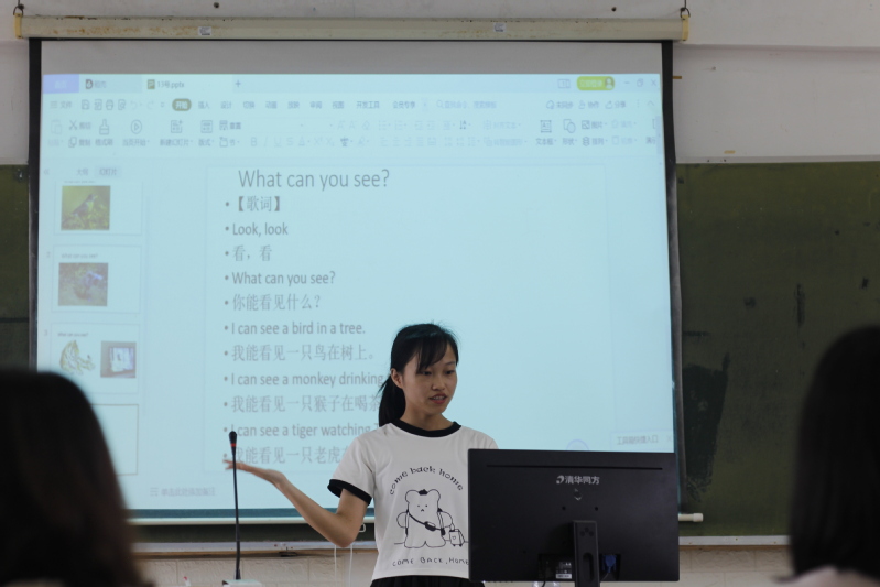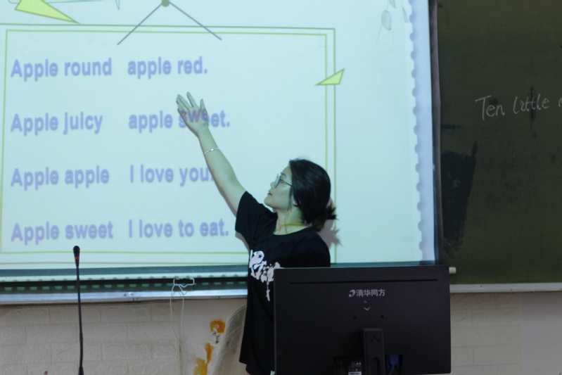 本次大赛共有24位选手参加。比赛要求选手根据学生的年龄特点设计教学目标、教法、教学过程,充分体现以学生为主体的教学理念。同时理解歌曲风格,把握曲调节奏,保证英文发音准确,结合肢体动作进行演唱。评委老师将分别从教态和语言、教具和 PPT、教学过程、课堂组织等四个方面对选手进行综合考核。比赛过程中,各位选手依次上台展示。每位选手都展现出流畅的讲解,严谨的思路、创新的教学教法以及镇定自若的神情。