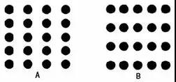 A被看成纵列,B被看成横行,因为它们形状一致的情况下,位置更接近就更容易分成一组,理解起来更容易。